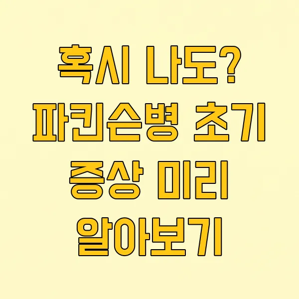 혹시 평소와 다른 몸의 변화를 느끼고 계신가요? 파킨슨병은 서서히 진행되기 때문에 초기에 알아차리지 못하는 경우가 많아요. 이 글을 통해 파킨슨병의 주요 초기 증상들을 꼼꼼히 살펴보고, 내 몸의 신호에 귀 기울여 보는 시간을 가져보세요. 여러분의 건강한 일상을 지키는 데 도움이 될 거예요!